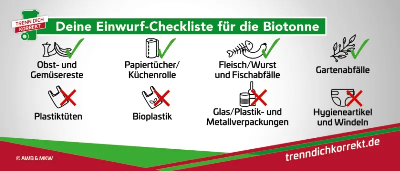 Als kleine Sortierhilfe haben wir für Dich einen smarten Tonnenaufkleber mit den wichtigsten vermeidbaren Fehlwürfen erstellt, denn in der Regel sind es immer die gleichen Störstoffe, die in der Biotonne landen. Alle neu ausgelieferten Biotonnen werden von uns ab sofort mit diesem Hinweisaufkleber ausgestattet. Auch Du kannst Deine bereits vorhandene Biotonne damit aufwerten!